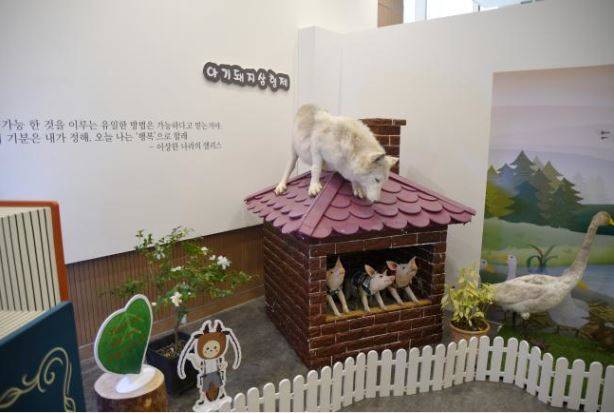 ‘동화를 뚫고 나온 생물 광릉숲 탐험대’ 특별 기획전에 마련된 동화 ‘아기 돼지 삼형제’ 코너. 사진=국립수목원