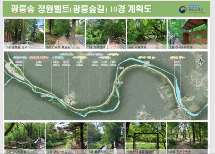 광릉숲길에는 테마별로 10개의 정원이 만들어져 10가지의 이색적인 숲 경치(10경)를 만끽할 수 있다.